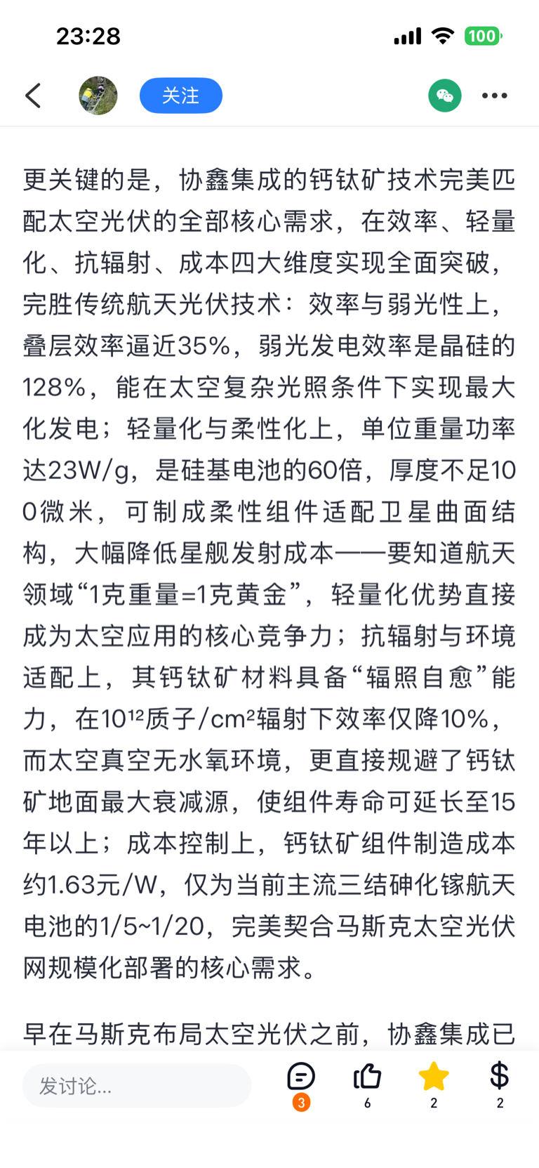 $协鑫集成(SZ002506)$ 协鑫集成:1、实锤:与老马有合作意向;2、全球光伏“黑科技”龙头:钙钛矿组件“高效超轻超薄超柔软可弯曲”,特别是成本是三结砷化镓的1/20!3、全球光伏“皇冠明珠”!“太空光伏”光电转换效率最高!