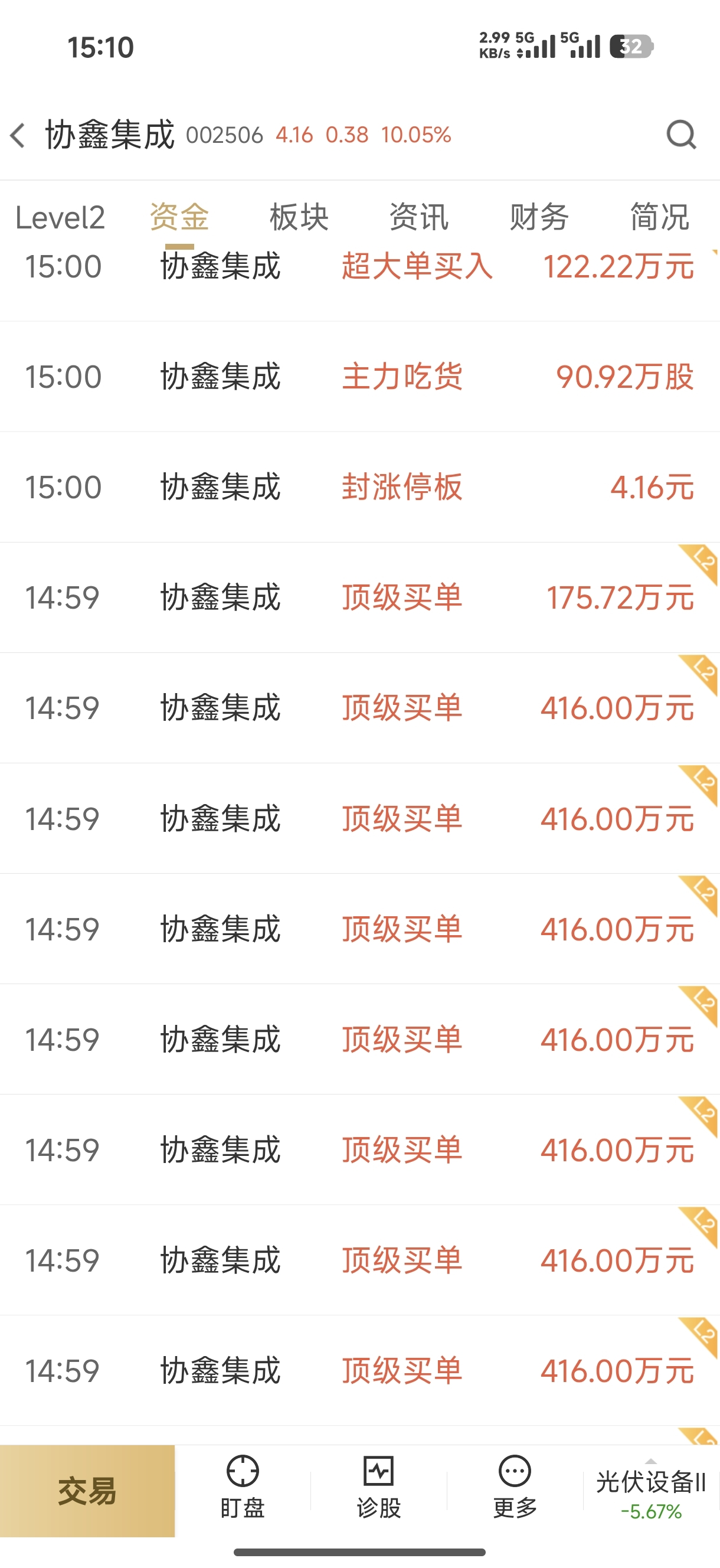 $协鑫集成(SZ002506)$ 尾盘竞价
