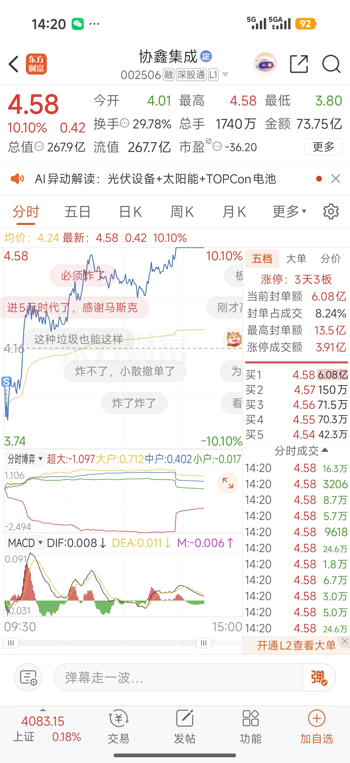 温馨提示: 1.根据《证券法》规定,禁止编造、传播虚假信息或者误导性信息,扰乱证券市场;2.用户在本社区发表的所有资料、言论等仅代表个人观点,与本网站立场无关,不对您构成任何投资建议。用户应基于自己的独立判断,自行决定证券投资并承担相应风险。《东方财富社区管理规定》
