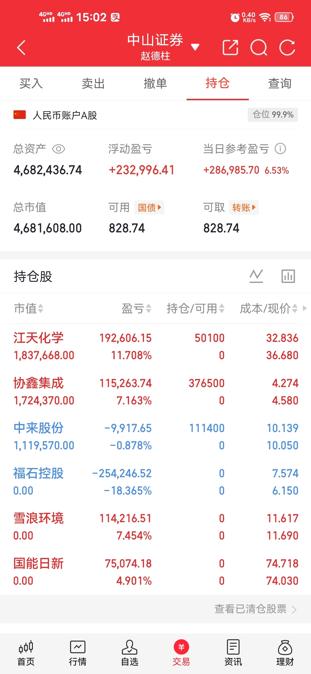 元旦后200W入市实盘记录:持有:持仓全换卖出:福石控股,国能日新,雪浪环境买入