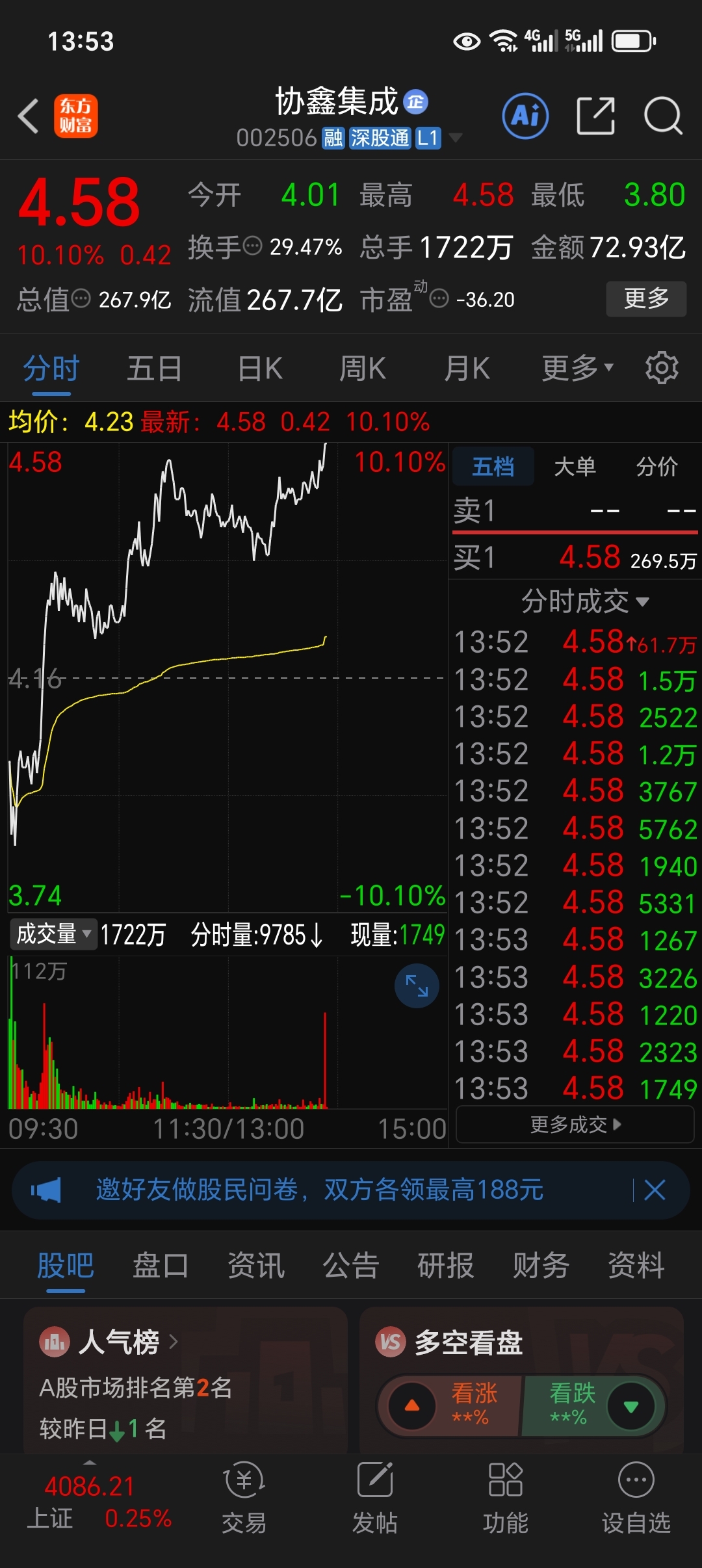 温馨提示: 1.根据《证券法》规定,禁止编造、传播虚假信息或者误导性信息,扰乱证券市场;2.用户在本社区发表的所有资料、言论等仅代表个人观点,与本网站立场无关,不对您构成任何投资建议。用户应基于自己的独立判断,自行决定证券投资并承担相应风险。《东方财富社区管理规定》