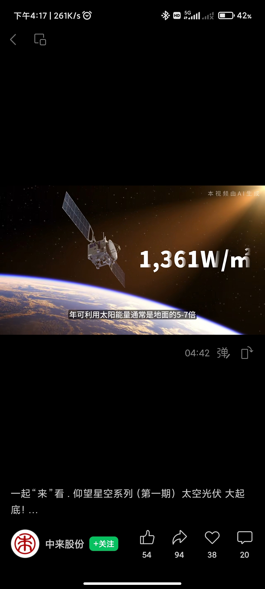 别争了,中来股份公众号已经发了太空光伏的视频了。