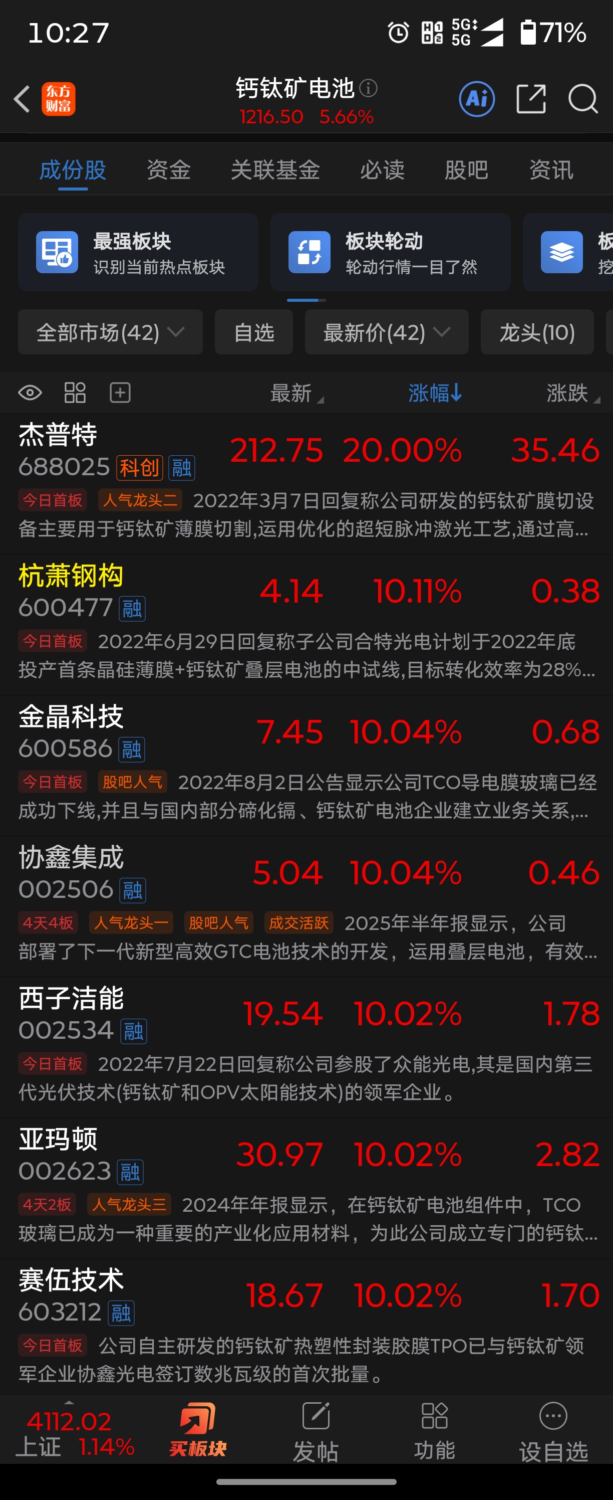 带动了两个板块,这玩意主打是第三代光伏电池钙钛矿,其次是光伏设备