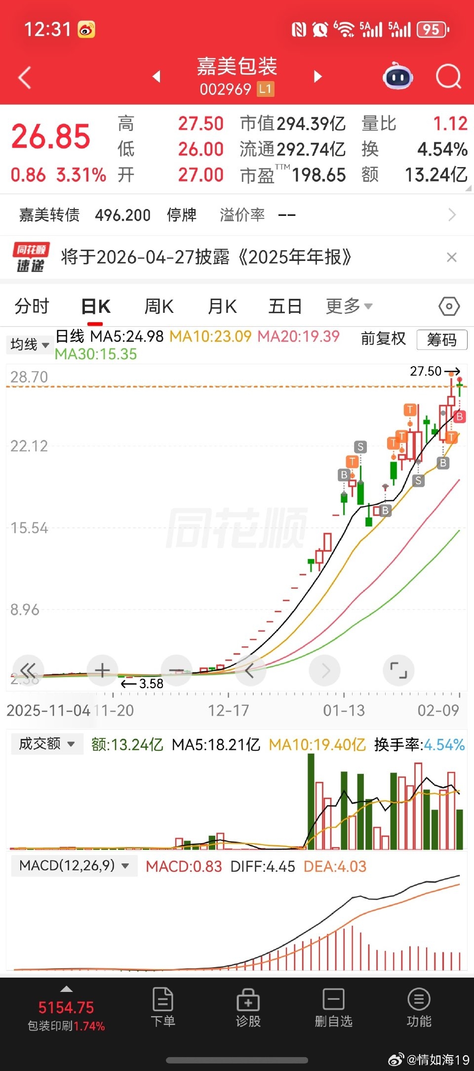 $协鑫集成(SZ002506)$ 2月9日9点28分:1.单点8天嘉兴包装绿吸红卖T。嘉美包装单点8天给你们T,也翻倍了,恭喜全仓吃肉[太阳]