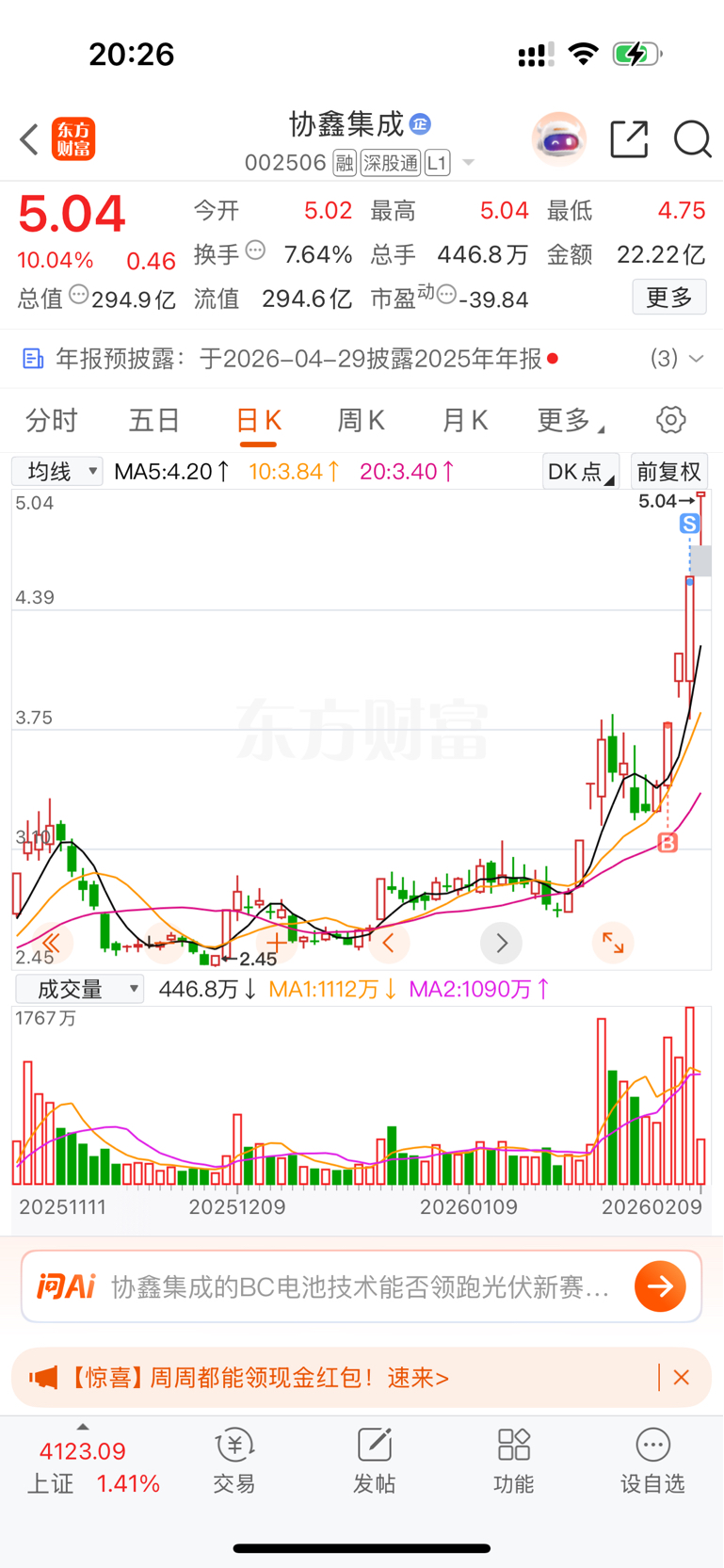 $协鑫集成(SZ002506)$ 吃了两个板,跑的早了,心态还是不稳