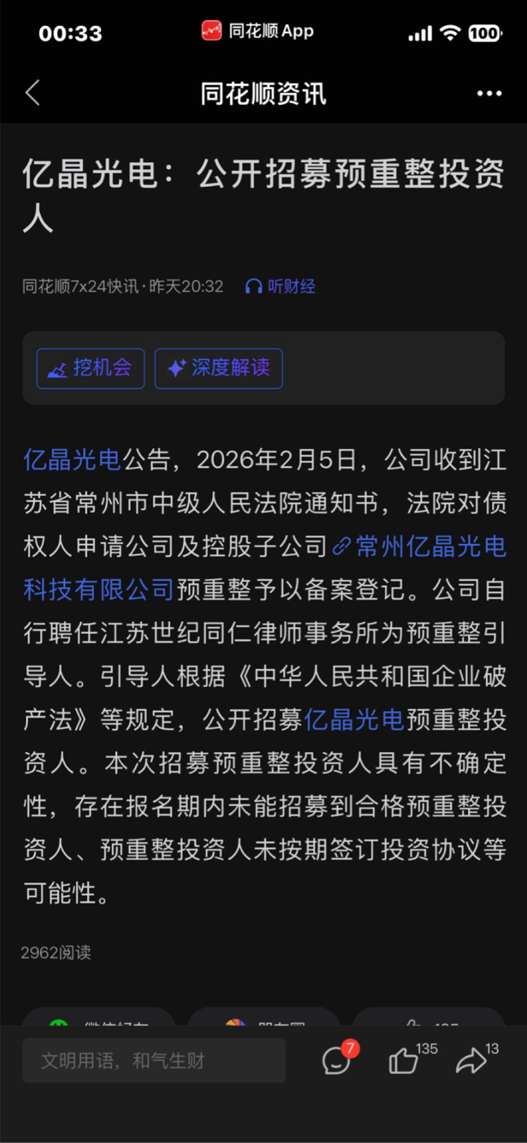 预重整、公开招募投资人、速度之快(两天时间)