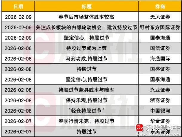 看12家券商研报:都建议持股过节,一致看多节后春季行情。
