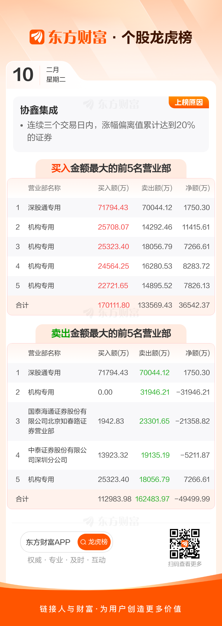 协鑫集成(002506)龙虎榜数据(02-10)