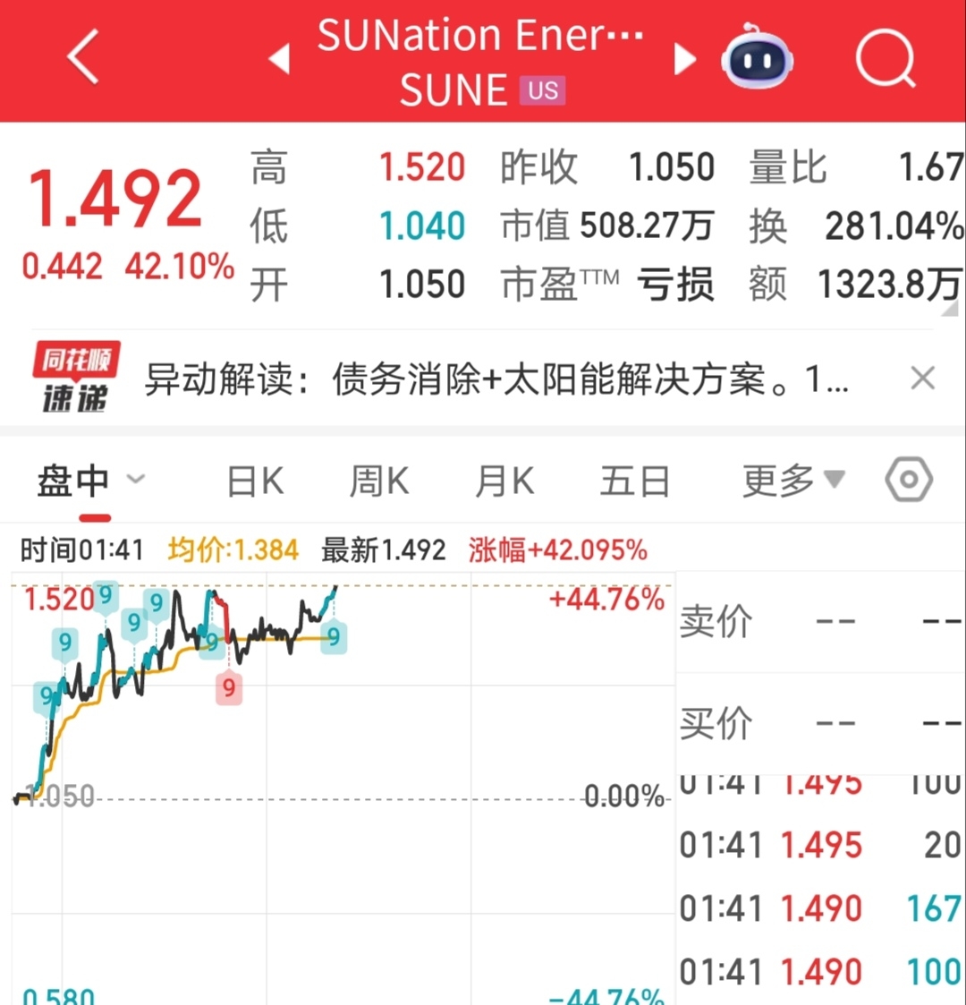 $协鑫集成(SZ002506)$ 美股光伏大涨40个点