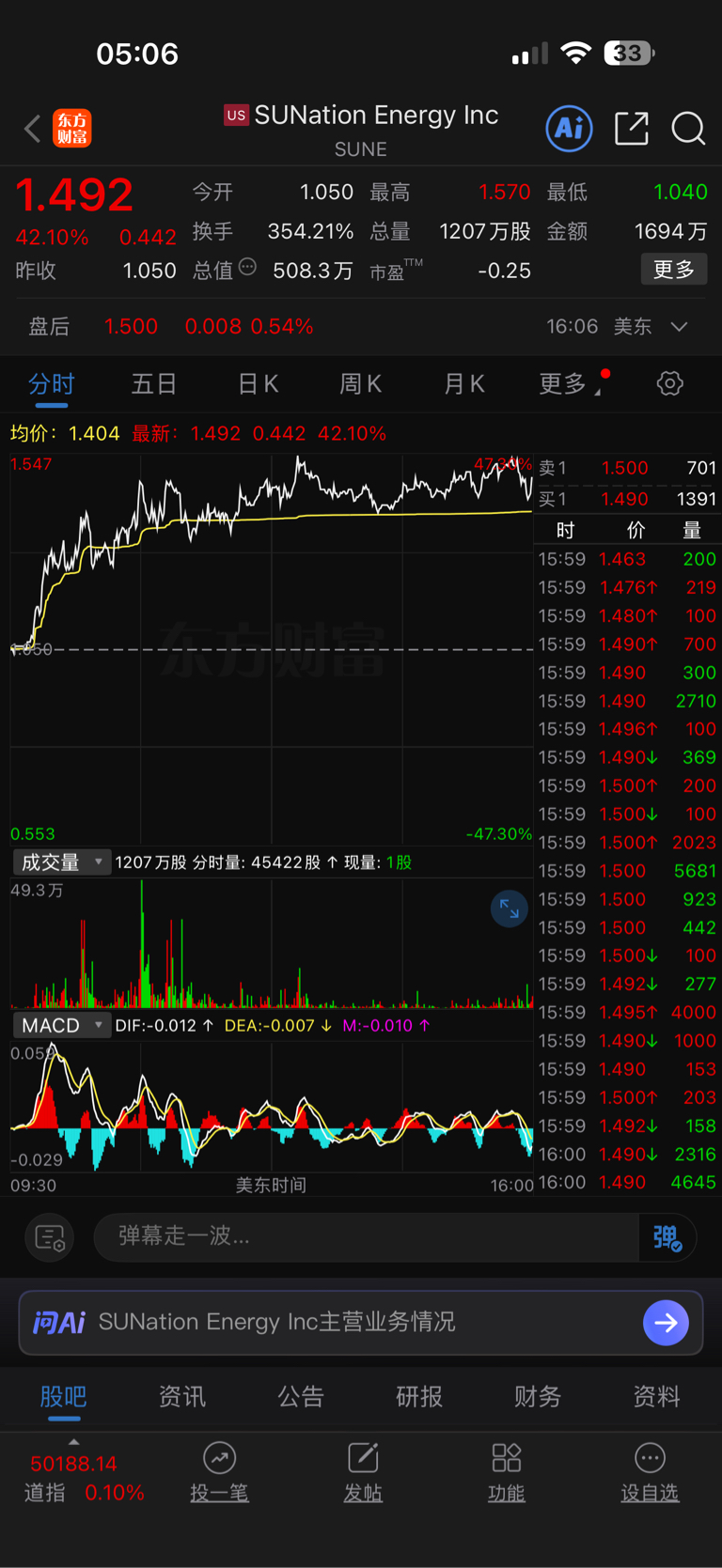 美股太空光伏涨了42个点。