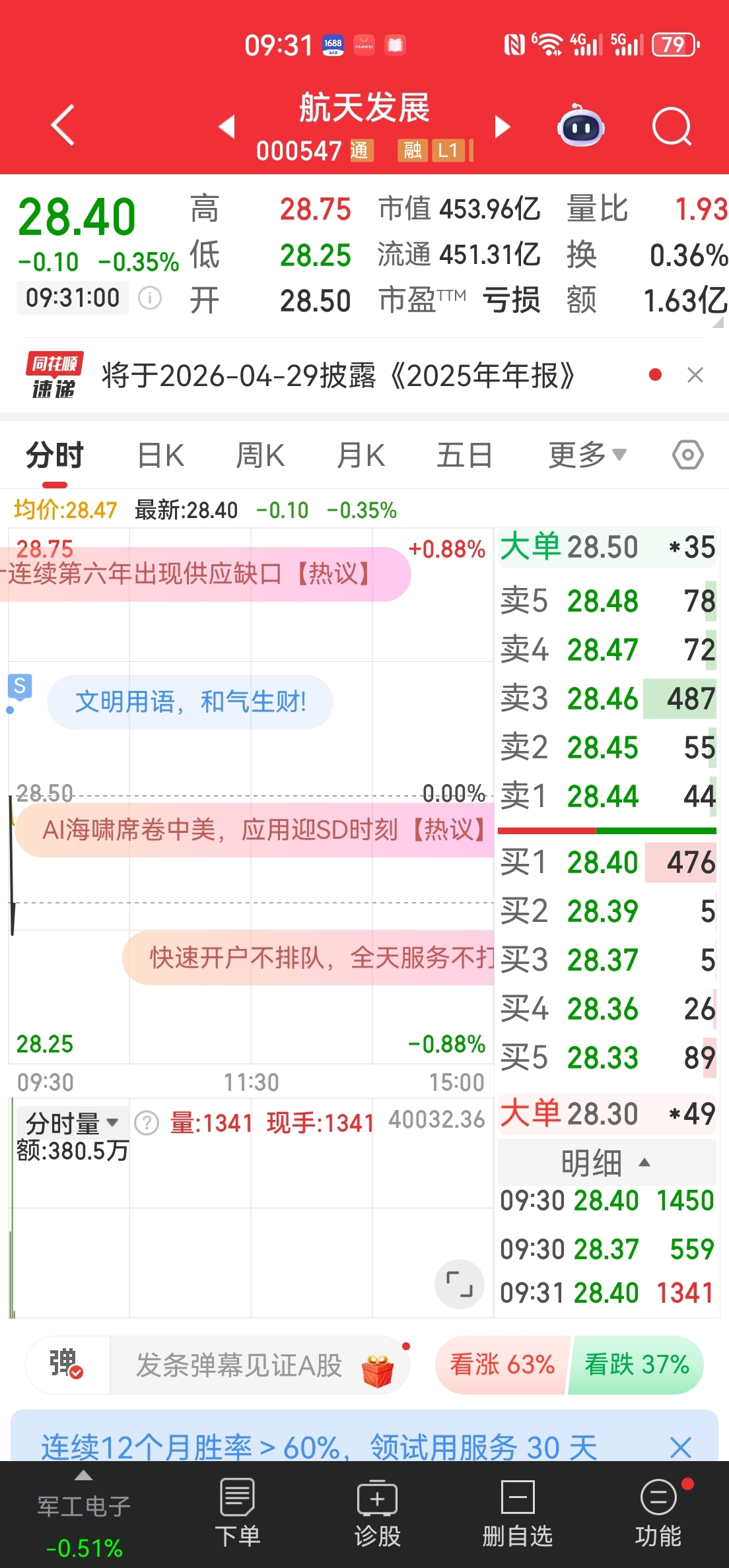 $协鑫集成(SZ002506)$ 一万到一百万第80天,航天发展0轴走了,0轴附近买了协鑫