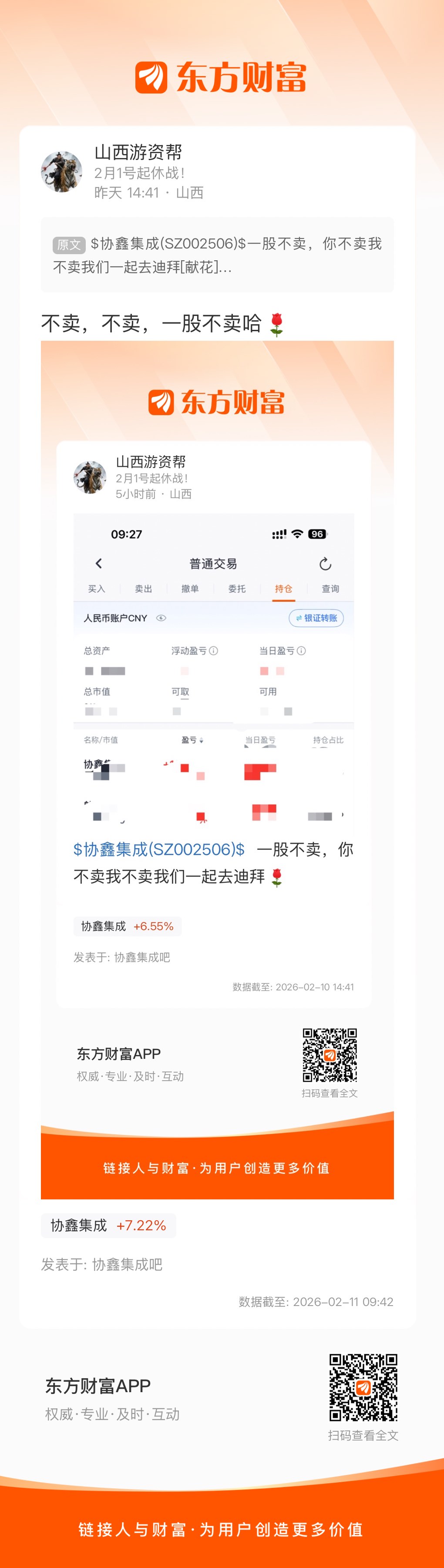 不卖,不卖,一股不卖哈