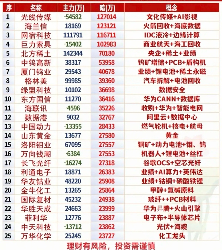 2.11周三暗盘资金流入榜数据整理资金抢筹热点:1.磷化工,氟化工2.锂矿资源有