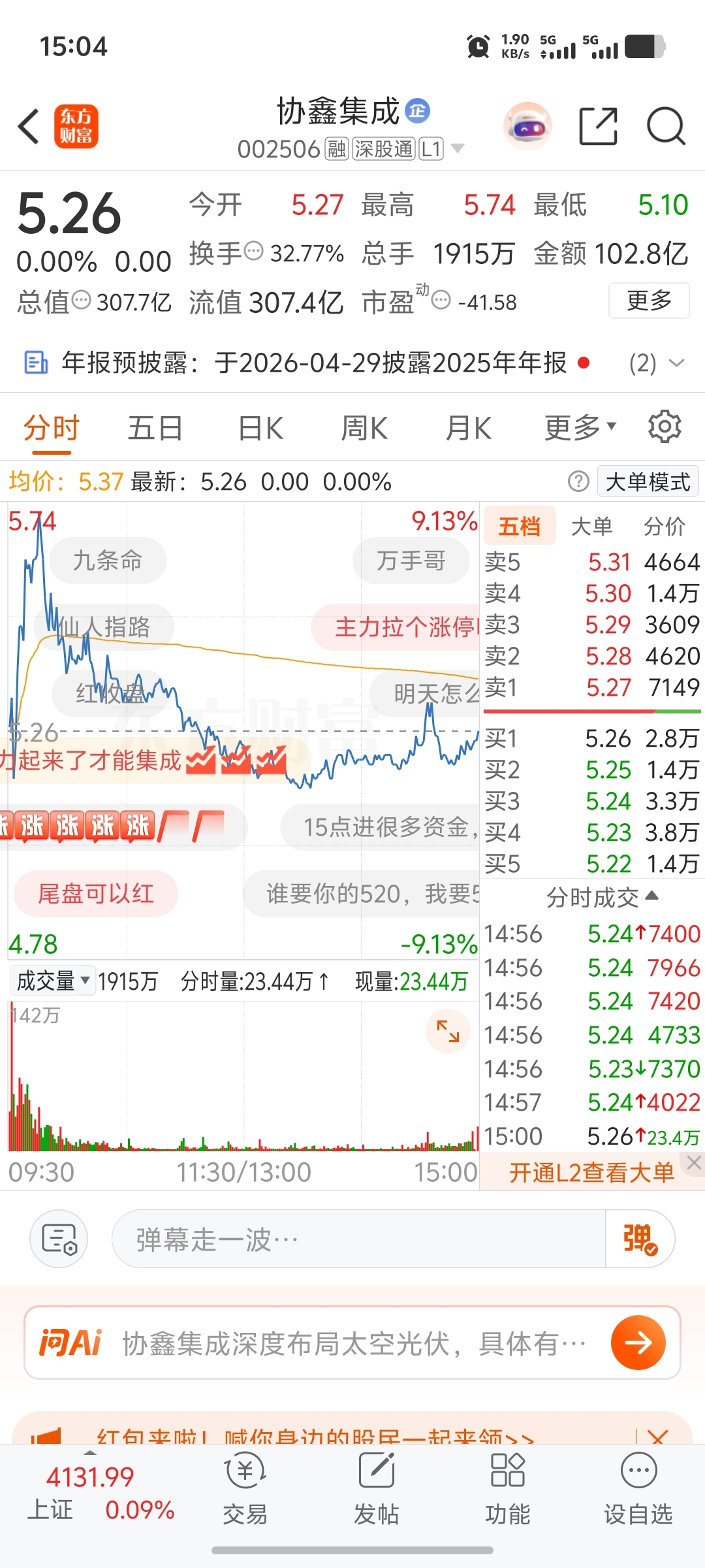 $协鑫集成(SZ002506)$ 没跌停让你们失望了哈哈哈告诉你们一个坏消息我今天做T还赚了7个点。。气人不哈哈哈?