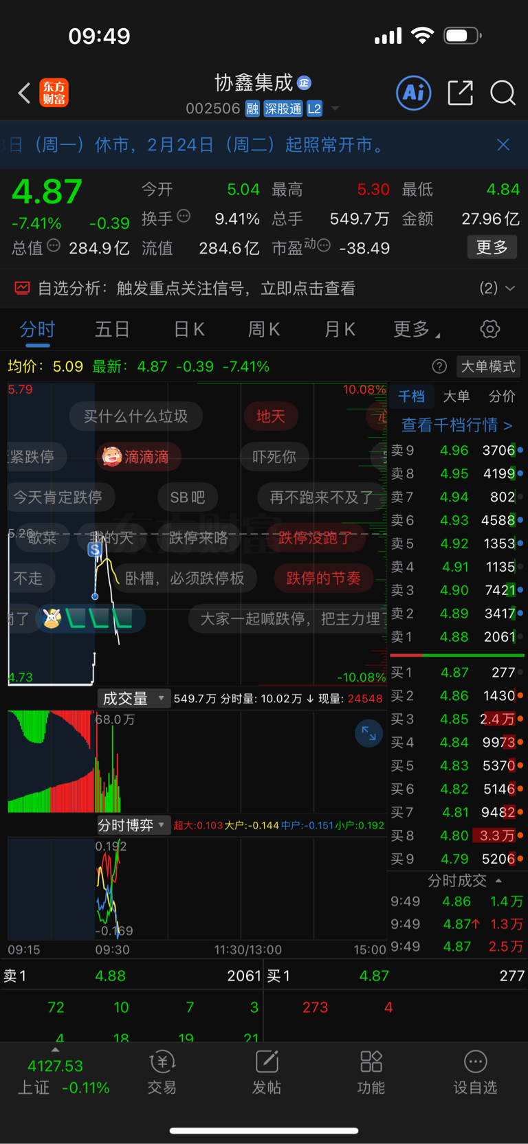 温馨提示: 1.根据《证券法》规定,禁止编造、传播虚假信息或者误导性信息,扰乱证券市场;2.用户在本社区发表的所有资料、言论等仅代表个人观点,与本网站立场无关,不对您构成任何投资建议。用户应基于自己的独立判断,自行决定证券投资并承担相应风险。《东方财富社区管理规定》