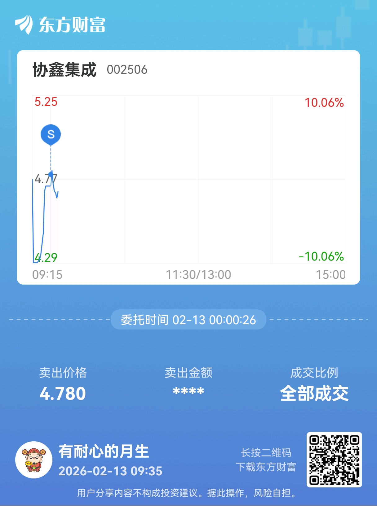 委托标的:买卖方向:笔记:昨天4.75进的,隔夜挂了4.78跑路,没反应过来就卖