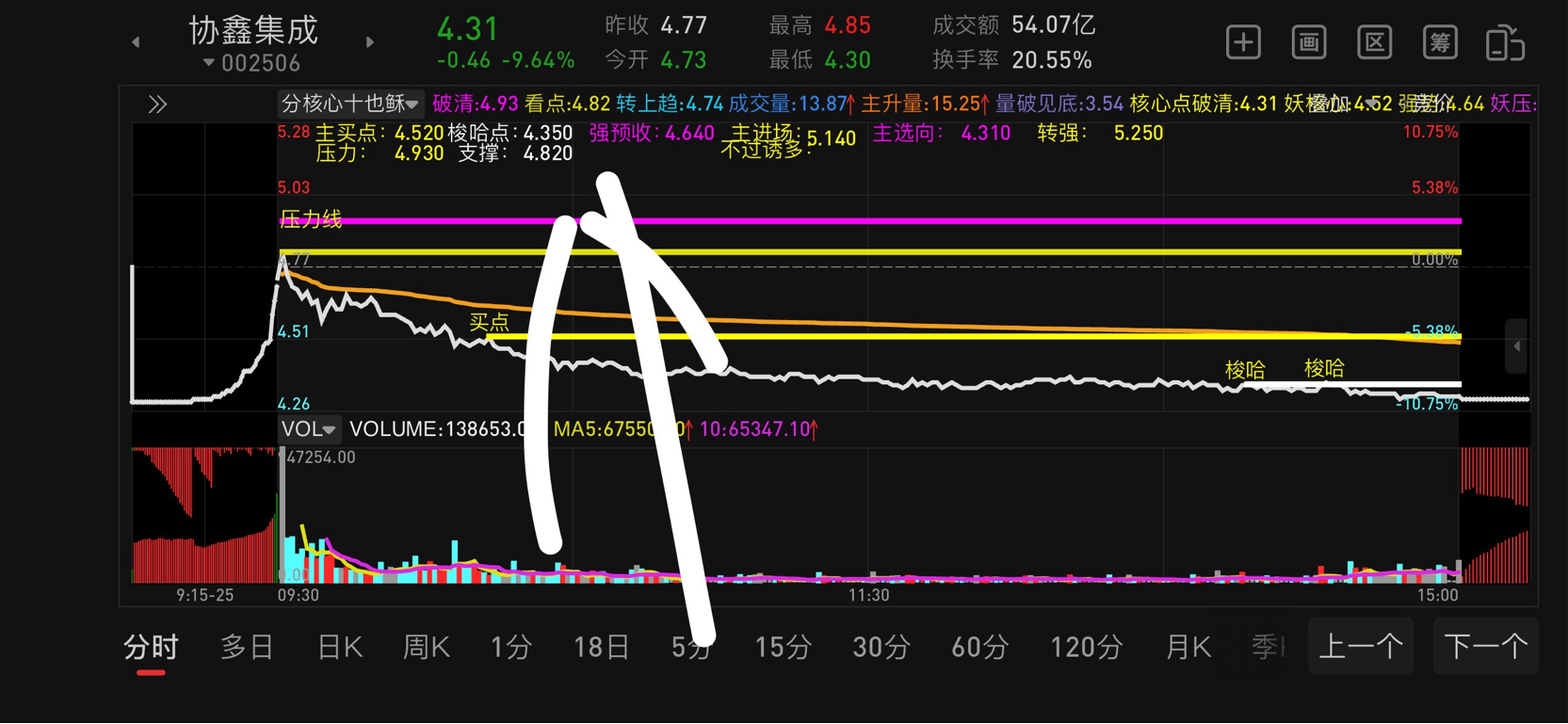 今日“梭哈点”4.35,节后开盘低于4.35果断清仓走人,等3.66在看,个人记录,