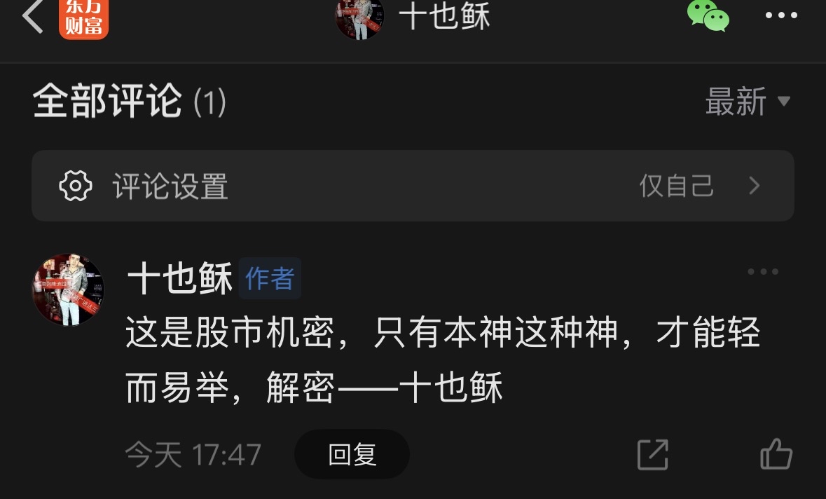温馨提示: 1.根据《证券法》规定,禁止编造、传播虚假信息或者误导性信息,扰乱证券市场;2.用户在本社区发表的所有资料、言论等仅代表个人观点,与本网站立场无关,不对您构成任何投资建议。用户应基于自己的独立判断,自行决定证券投资并承担相应风险。《东方财富社区管理规定》