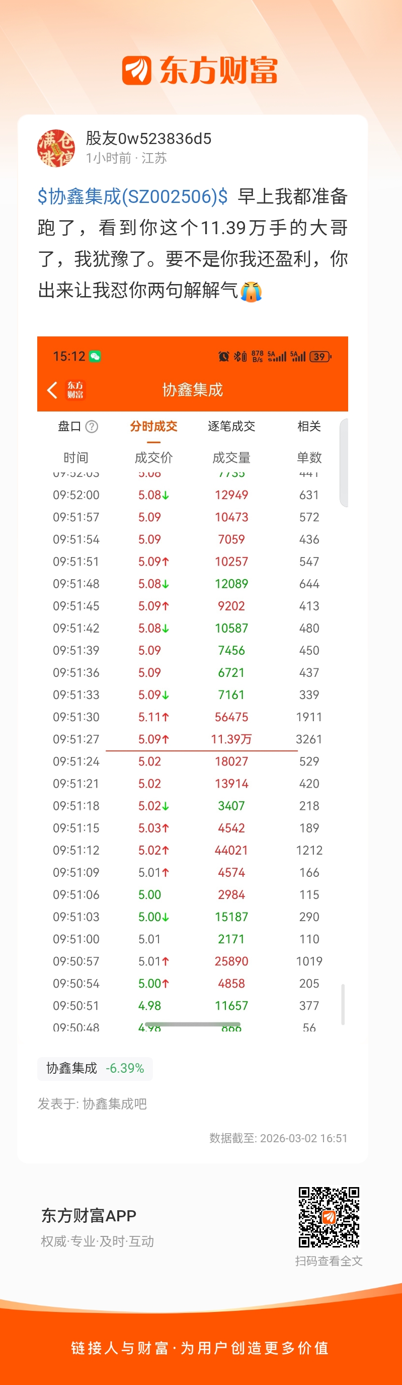 $协鑫集成(SZ002506)$ 早上我都准备跑了,看到你这个11.39万手的大哥了,我犹豫了。要不是你我还盈利,你出来让我怼你两句解解气