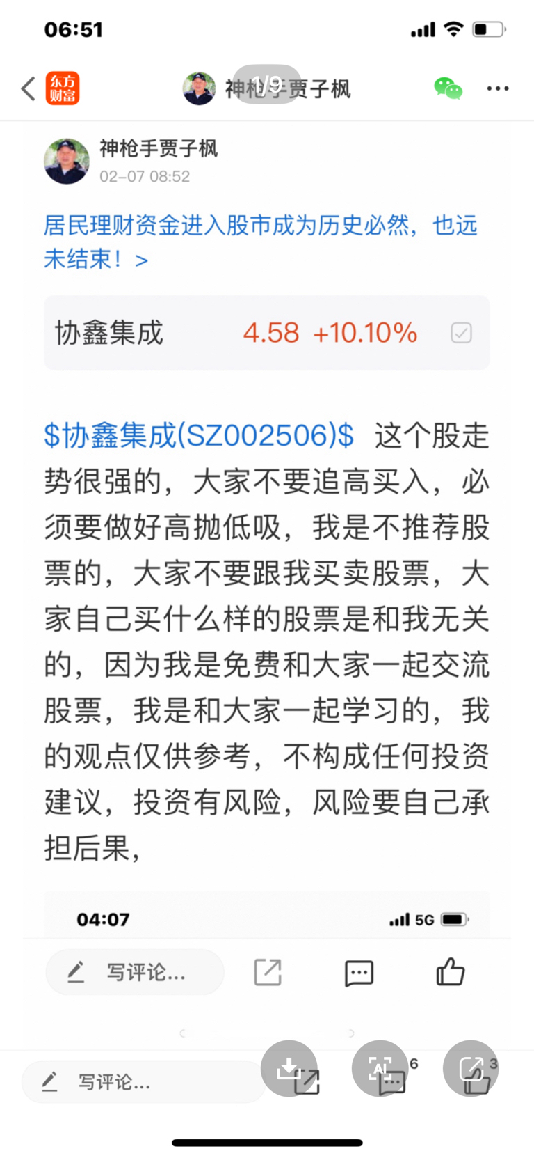 温馨提示: 1.根据《证券法》规定,禁止编造、传播虚假信息或者误导性信息,扰乱证券市场;2.用户在本社区发表的所有资料、言论等仅代表个人观点,与本网站立场无关,不对您构成任何投资建议。用户应基于自己的独立判断,自行决定证券投资并承担相应风险。《东方财富社区管理规定》