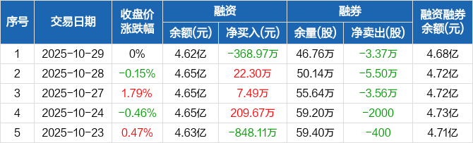 涪陵榨菜:融资净偿还368.97万元,融资余额4.62亿元(10-29)