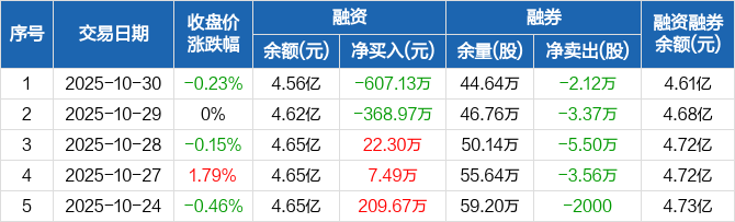 涪陵榨菜:融资净偿还607.13万元,融资余额4.56亿元(10-30)