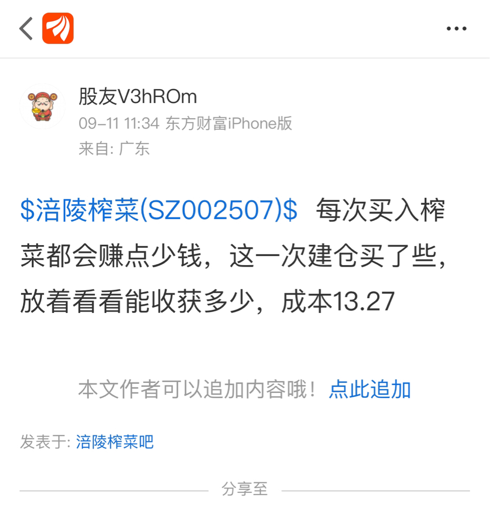 $涪陵榨菜(SZ002507)$ 持有两个月,也终于有点盈利了