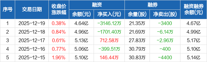 涪陵榨菜:融资净偿还3146.12万元,融资余额4.64亿元(12-19)