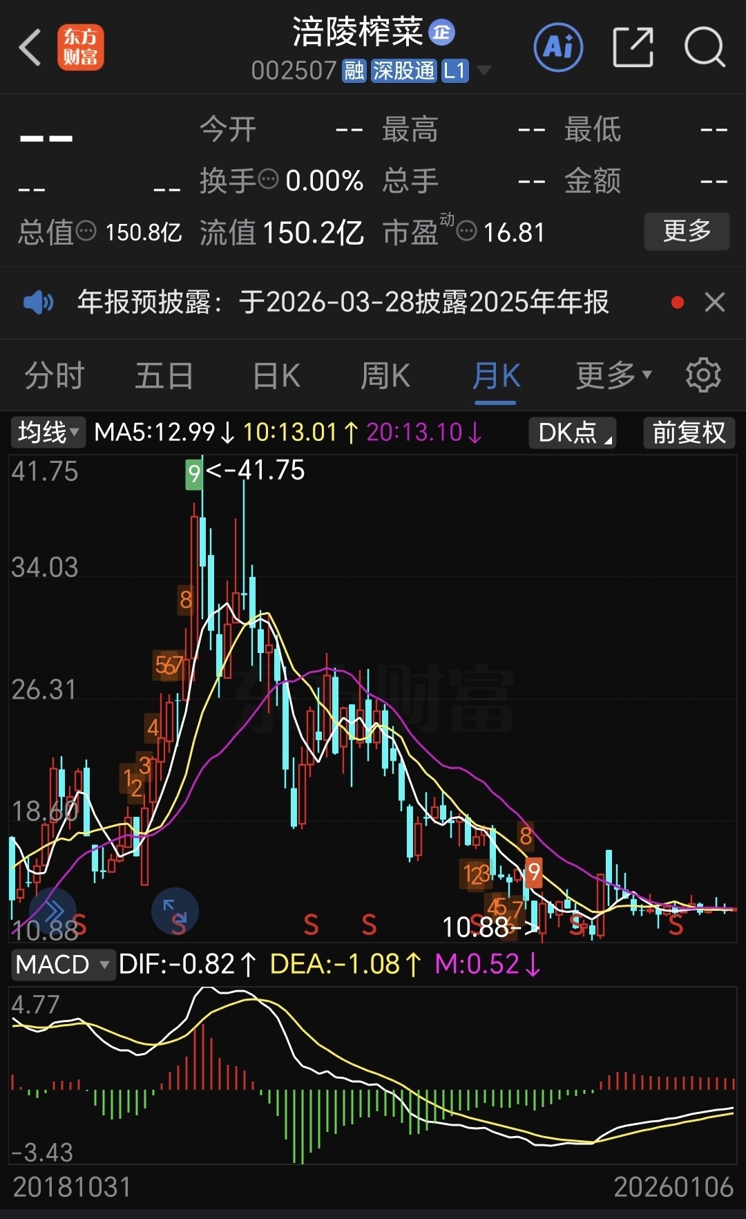 $涪陵榨菜(SZ002507)$ 大盘逆子,哪年解套哦