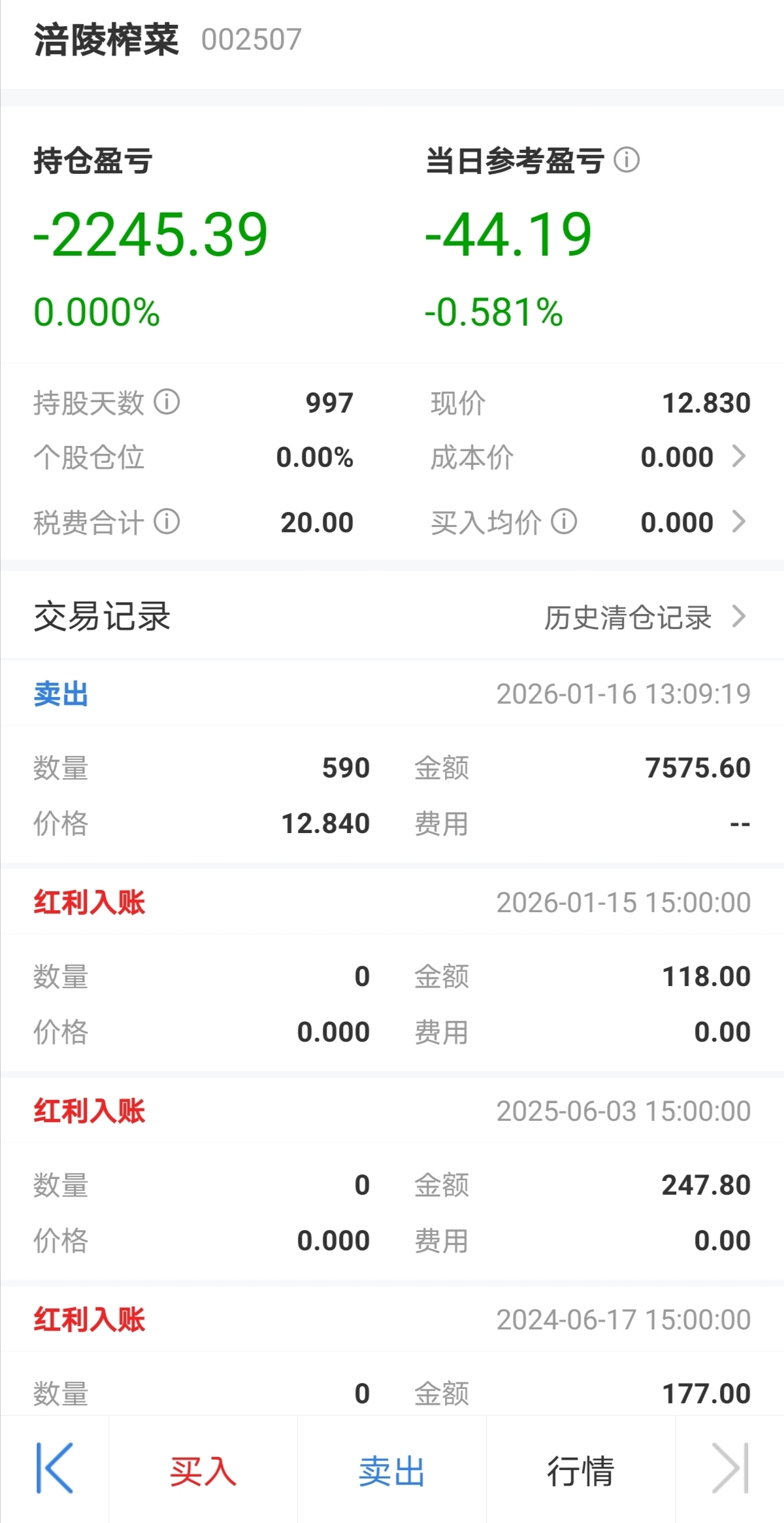 持有近1000天,明知不行还一直拿着没扔掉,今天总算是一鼓作气把它甩了。