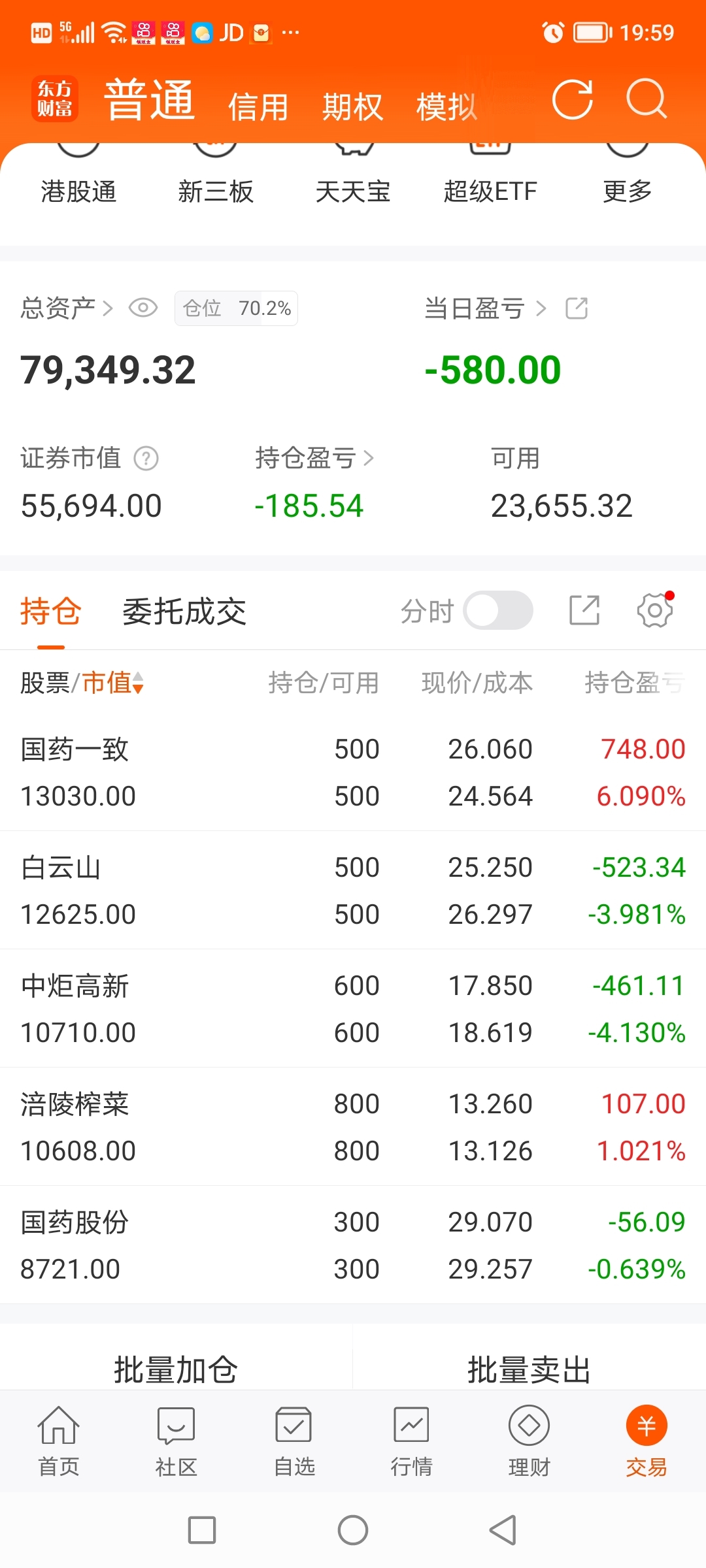 $涪陵榨菜(SZ002507)$ 大盘高位震荡行情(出货行情),对于老登股股友就是个鸡肋行情,最近几个月连看盘的欲望都没有,目前大盘风险大于机会的时候,不懂还是不要出手,追高可能套个三五年甚至更长时间。和近几个月持仓不变。一够话还是总量控制,小赌怡情吧!