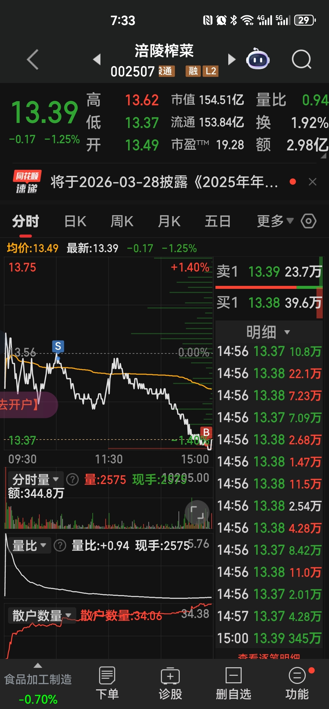 $涪陵榨菜(SZ002507)$ 做个小T,下周涨跌随便。