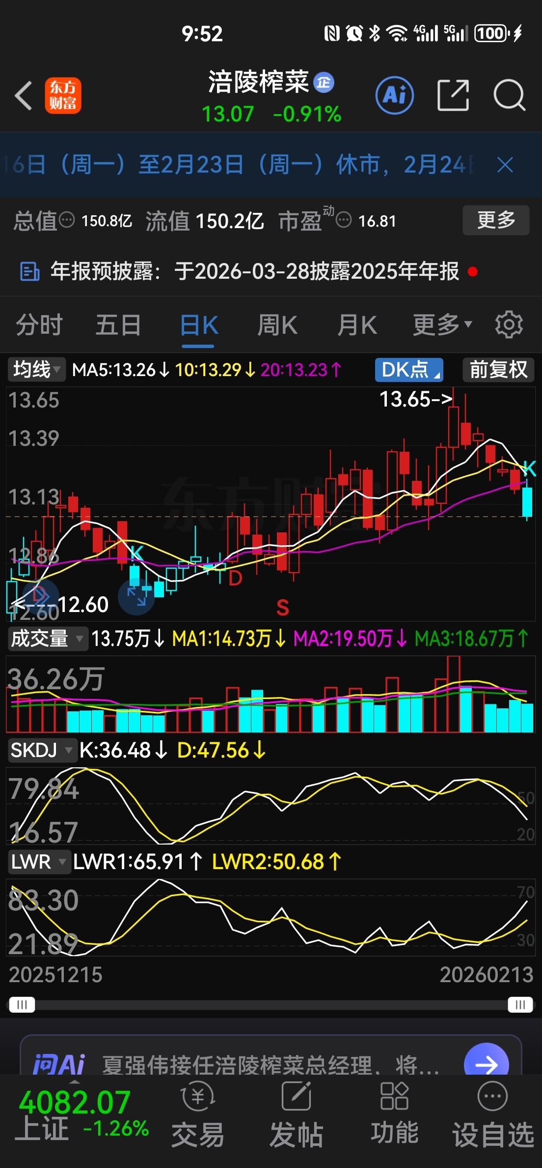 $涪陵榨菜(SZ002507)$ 又完犊子了