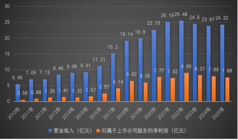 2010年11月23日,涪陵榨菜在深圳证券交易所上市。上市后,涪陵榨菜也曾经历高速增长,在2021年营业收入首度突破25亿元,并在2022年持续增长,但是最近几年未有新的突破;归属于上市公司股东的净利润在2022年逼近9亿元,但是至今未能突破9亿元。