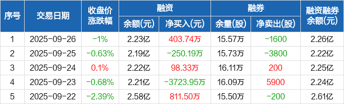 老板电器:融资净买入403.74万元,融资余额2.23亿元(09-26)