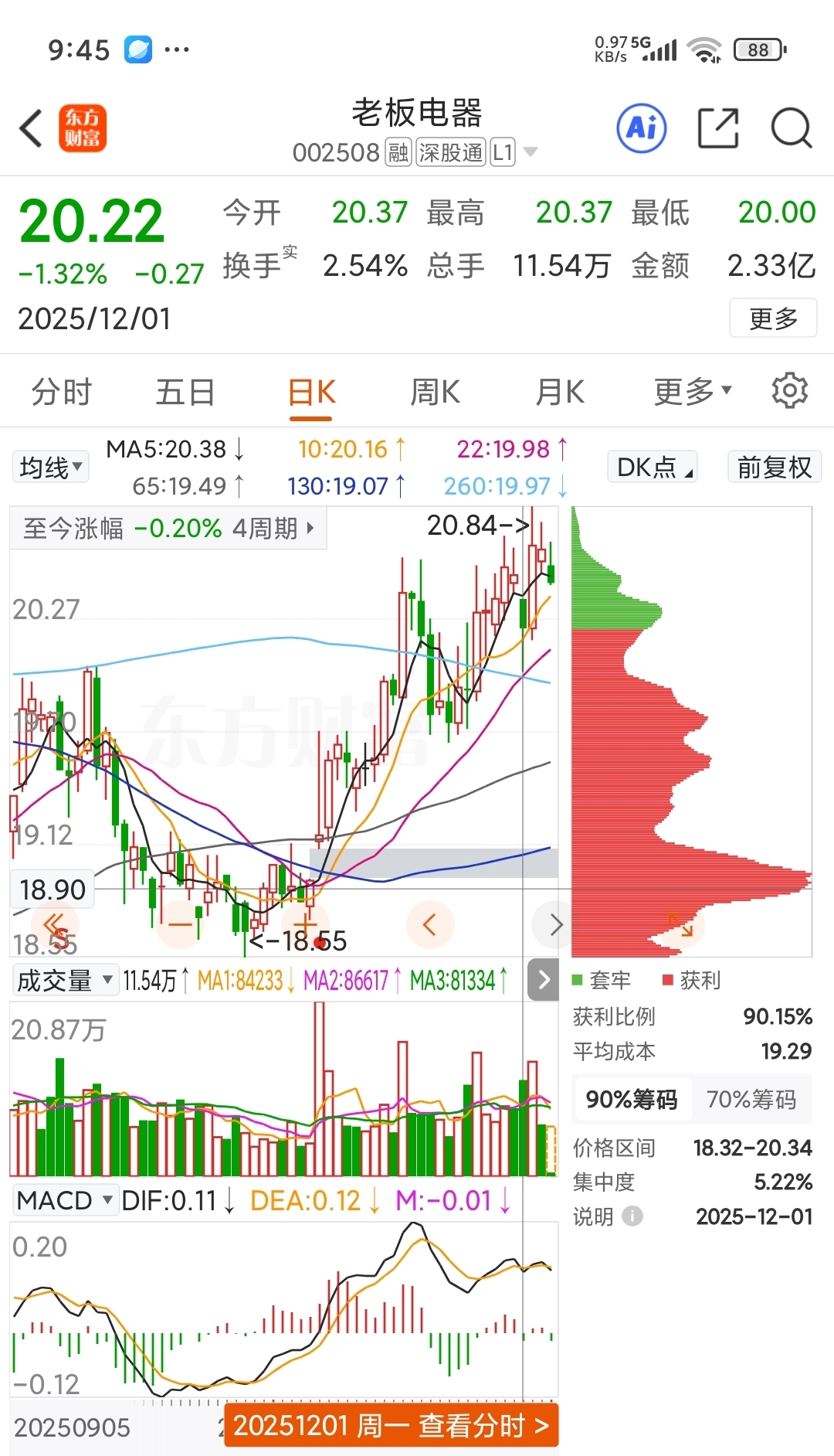 $老板电器(SZ002508)$ 这两天下方缺口处的“主力”筹码峰开始松动(出货),下图是比较。上图是上礼拜五的筹码分布,下图是现在的(代表昨天)。前天出了1/3,等待这两天拉升,似乎没有几乎。那么又得调整等几天了。真格的考验耐心!希望不是下山。!