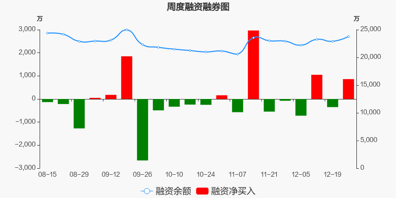老板电器本周(2025/12/22-2025/12/26)累计跌幅达1.66%,截至12月26日最新股价报收19.50元。从增量上来看,12月22日至12月25日融资买入交易规模4514.06万元,融资偿还规模3653.14万元,期内融资净买入860.92万元。从存量上来看,截止12月28日,老板电器融资融券余额2.39亿元,其中融资余额规模2.38亿元,融券余额规模154.76万元。