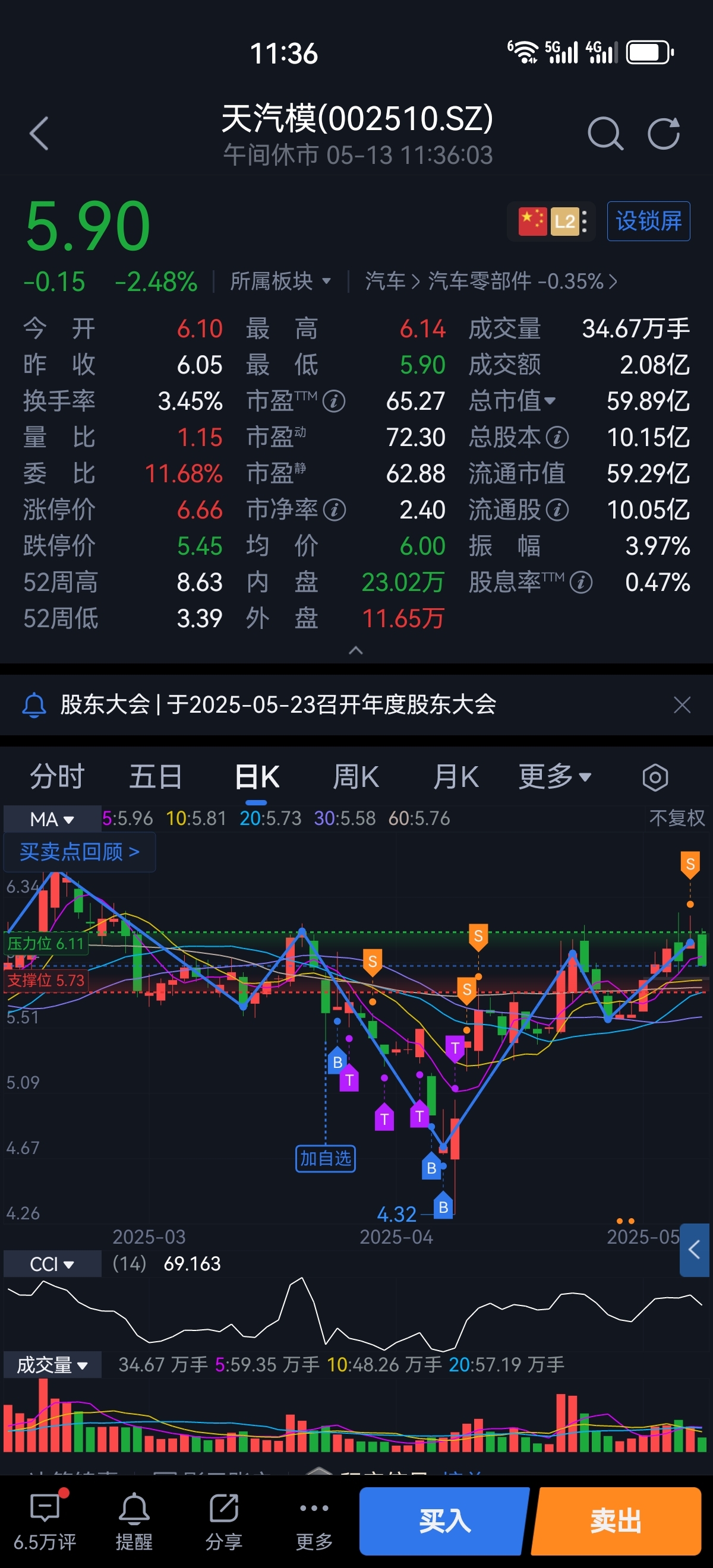 $天汽模(SZ002510)$ 昨天清仓转去了华旺科技,躲过了