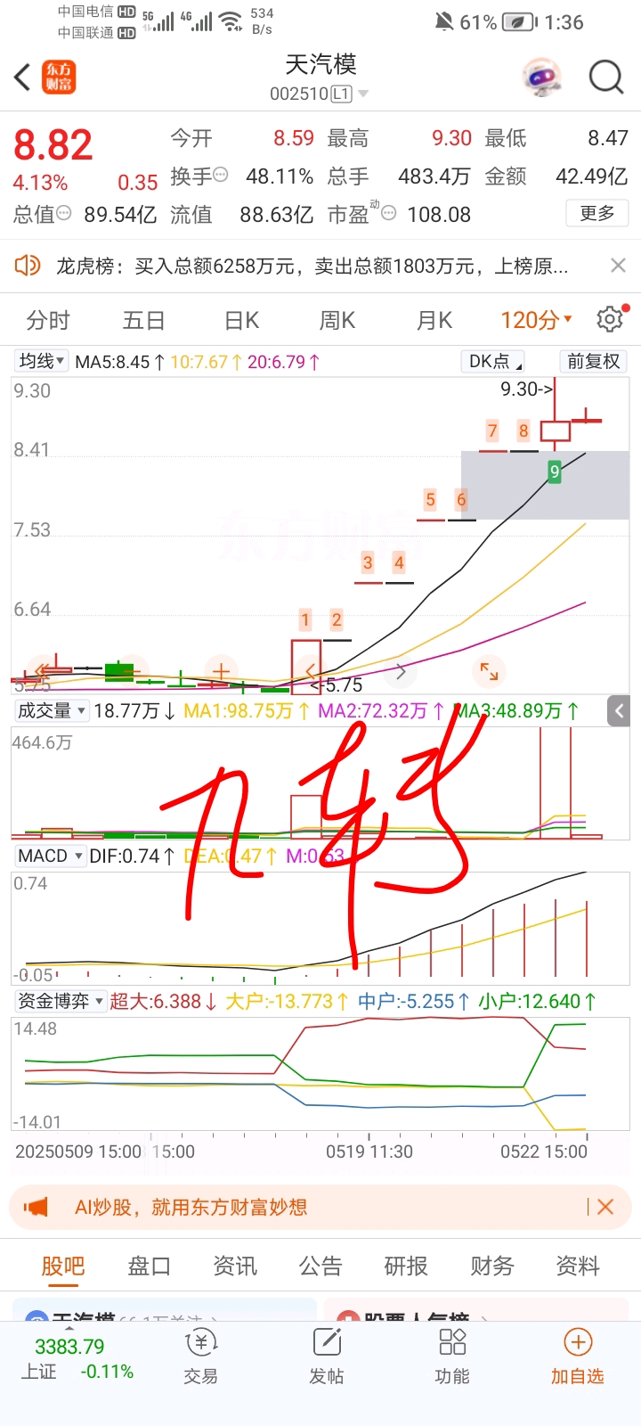 $天汽模(SZ002510)$ 大级别高九出现,大家还是应该尊重一下。