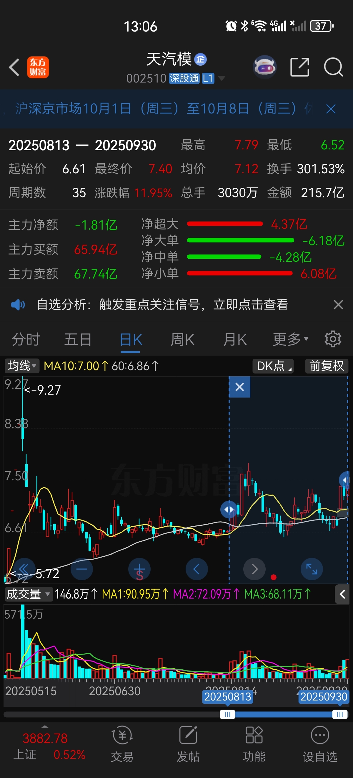 $天汽模(SZ002510)$ 这个区域明显有人建仓,为什么建仓
