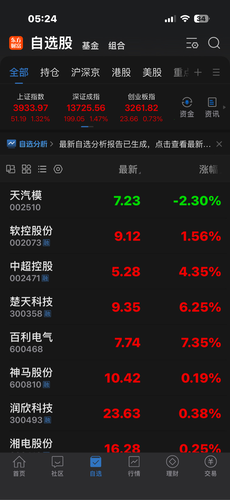 $天汽模(SZ002510)$ 什么东西呀,自选股就它跌