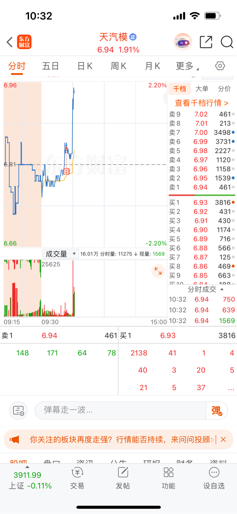 $天汽模(SZ002510)$ gou主力一卖你就拉