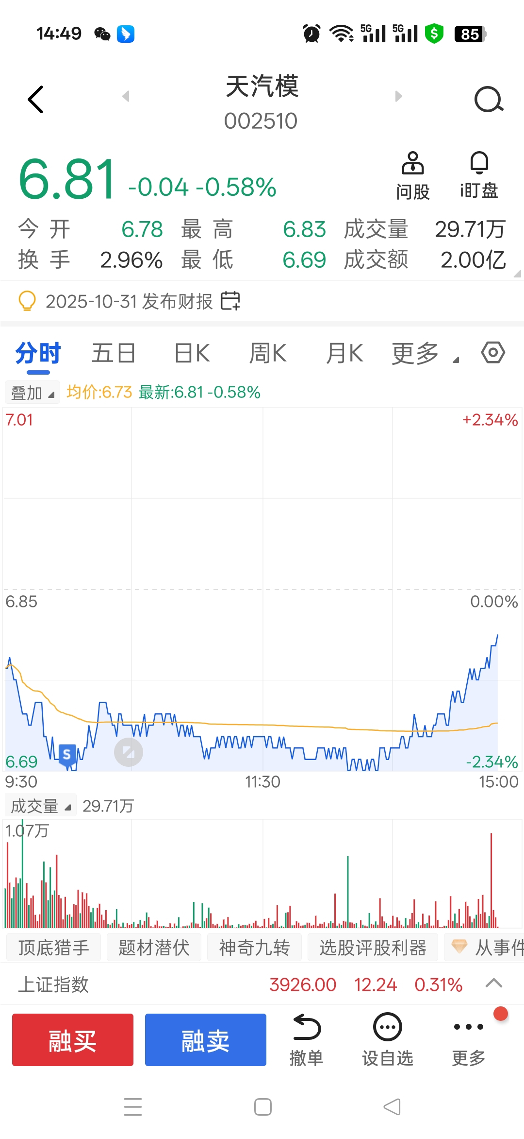 $天汽模(SZ002510)$ 麻蛋一卖你就就涨