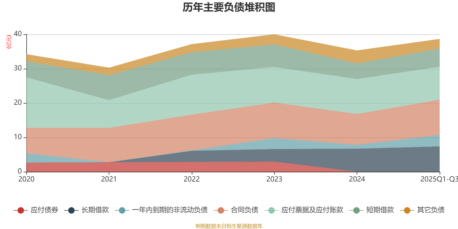 负债重大变化方面,截至2025年三季度末,公司一年内到期的非流动负债较上年末增加203.54%,占公司总资产比重上升3.44个百分点;应付票据及应付账款较上年末减少5.65%,占公司总资产比重下降1.85个百分点;合同负债较上年末增加13.65%,占公司总资产比重上升1.09个百分点;应交税费较上年末减少55.9%,占公司总资产比重下降0.95个百分点。