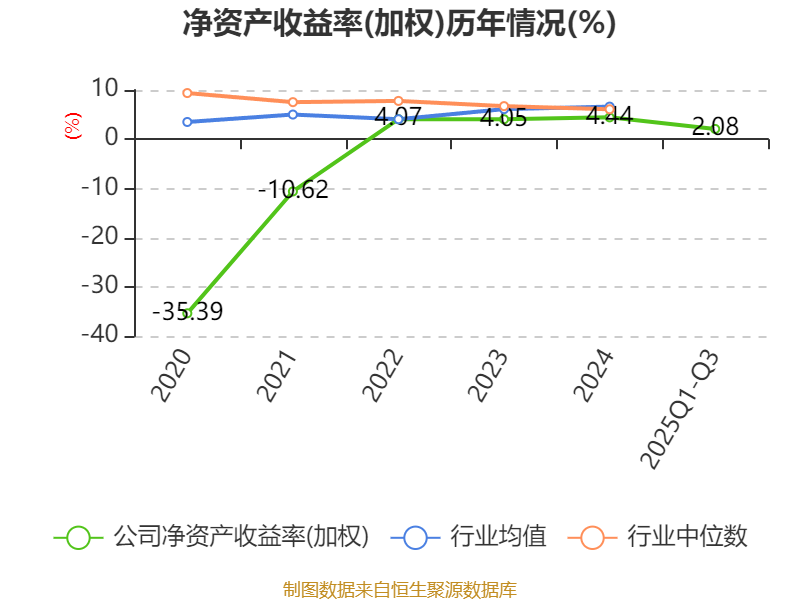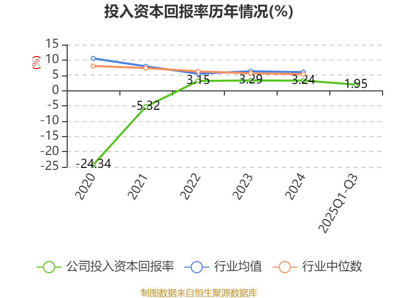 盈利能力方面, 2025年前三季度公司加权平均净资产收益率为2.08%,同比下降2.11个百分点。公司2025年前三季度投入资本回报率为1.95%,较上年同期下降0.64个百分点。