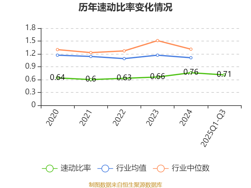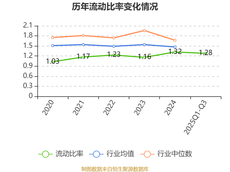 2025年前三季度,公司流动比率为1.28,速动比率为0.71。