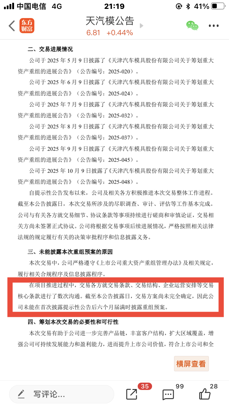 $天汽模(SZ002510)$ 别等了,从上个公告来看又悬了,估计又得流产了!