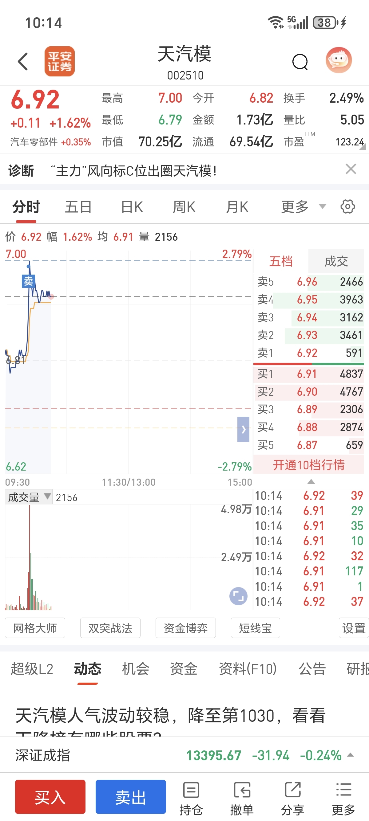 $天汽模(SZ002510)$ 快点变绿吧,我好T回来