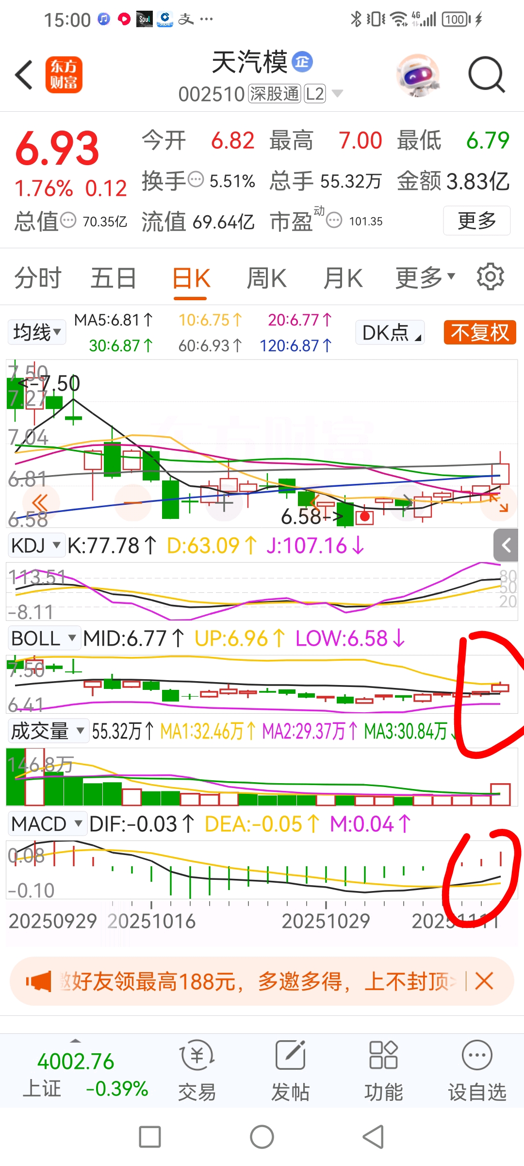 $天汽模(SZ002510)$ 要走一波7.8的行情,明天记得买