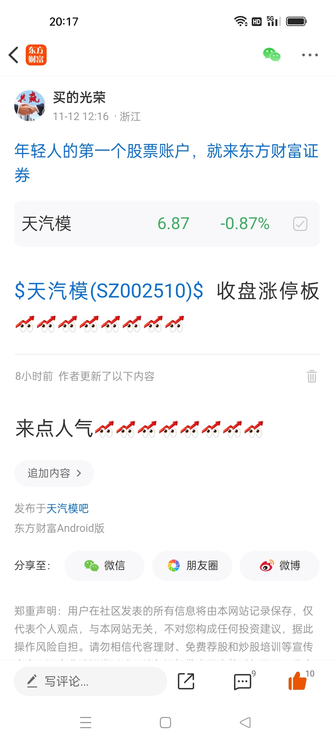 $天汽模(SZ002510)$ 跟你们说了收盘涨停板,你们还真不信,有几个朋友在我贴中很顺和我的观点,谢谢这几位朋友。大家发财